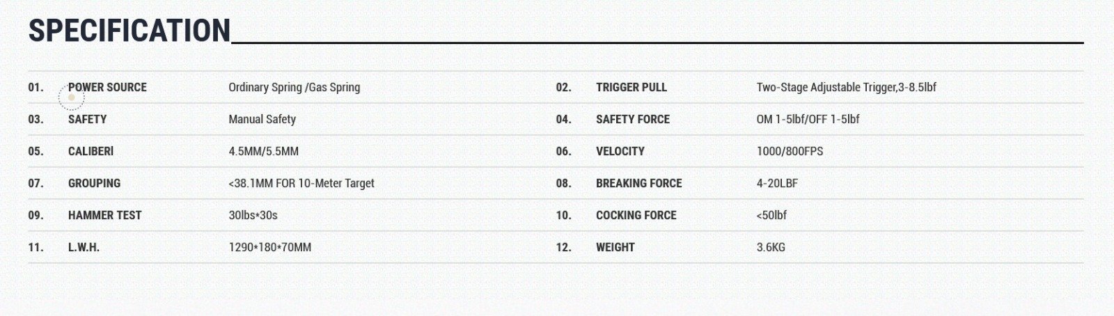 02. FUERZA DEL GATILLO Gatillo ajustable de dos etapas, 3-8.5 lbf